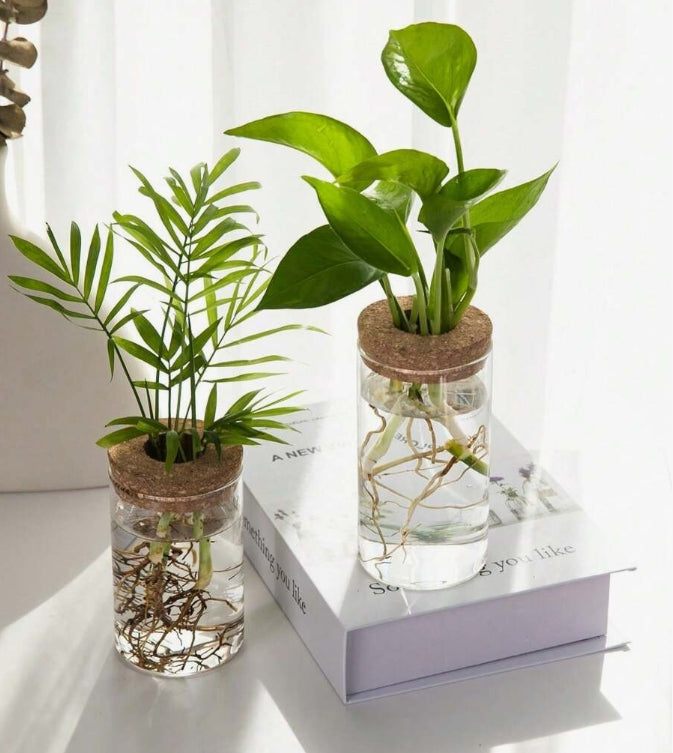 Questo contenitore trasparente è dotato di un tappo forato che mantiene la pianta stabile e permette alle radici di svilupparsi liberamente nell'acqua. Ideale per propagazione, talee e coltivazione idroponica di piante da appartamento.