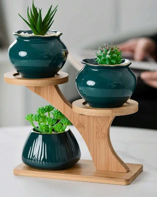 Porta piante in bambù a 3 ripiani