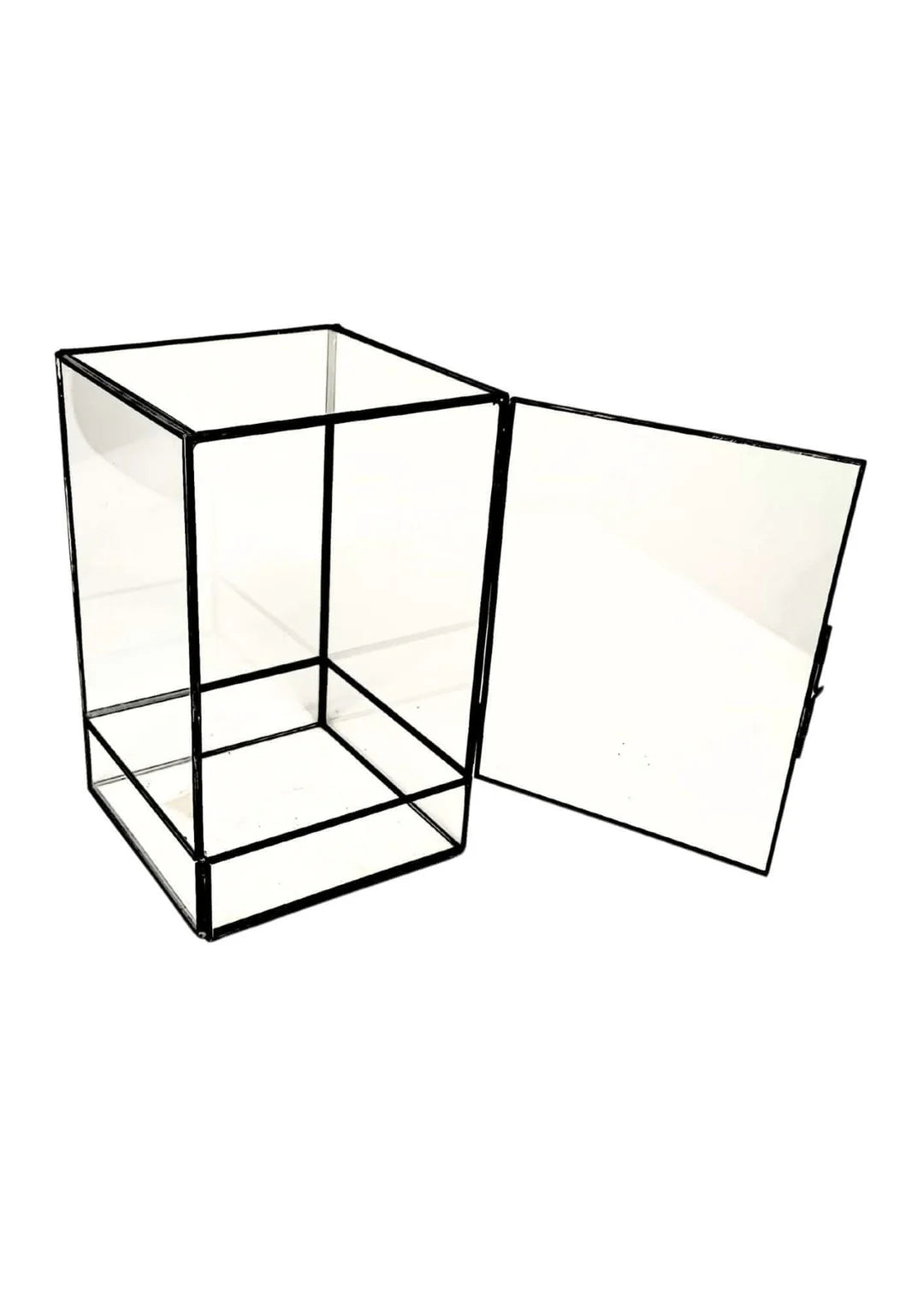 Scopri la bellezza della semplicità con questo contenitore per terrarium in vetro con telaio in ferro. Perfetto per chi ama il fai da te, questo terrarium ti consente di creare un giardino interno su misura. La sua struttura minimalista e le dimensioni compatte (21 cm di altezza, 13,5 cm di larghezza e profondità) lo rendono ideale per una varietà di piante (piante non incluse), trasformando il tuo spazio in un'oasi di tranquillità. Il robusto telaio in ferro nero aggiunge un tocco di eleganza industriale, mentre il vetro trasparente offre una visione nitida delle tue composizioni vegetali. Divertiti a creare il tuo angolo verde, personalizzandolo secondo il tuo gusto e stile.